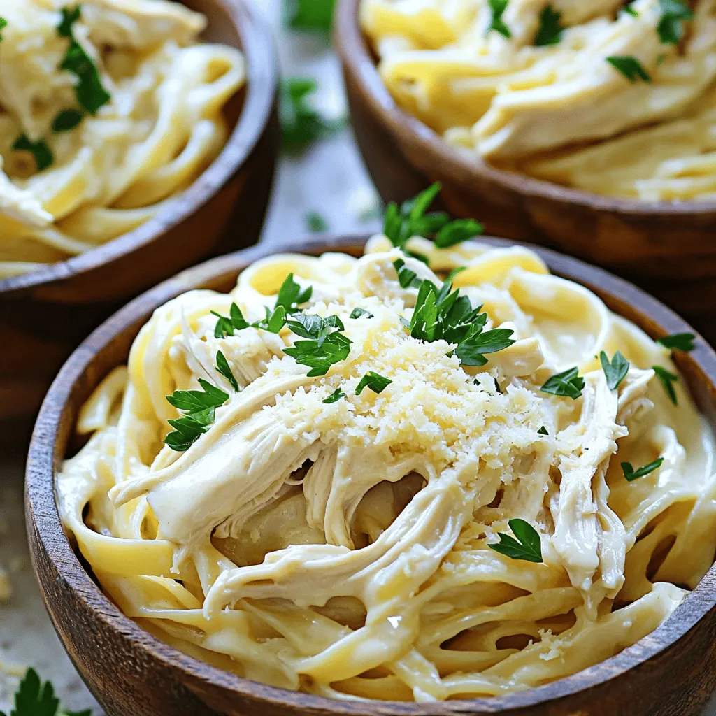 You can easily add vegetables to your creamy chicken Alfredo. I love to include broccoli, spinach, or bell peppers. Just chop them into small pieces. Add them to the slow cooker about 30 minutes before the pasta is done. This way, they cook just right and stay bright in color. Not only do they add flavor, but they also boost nutrition. Plus, the creamy sauce will coat the veggies nicely.