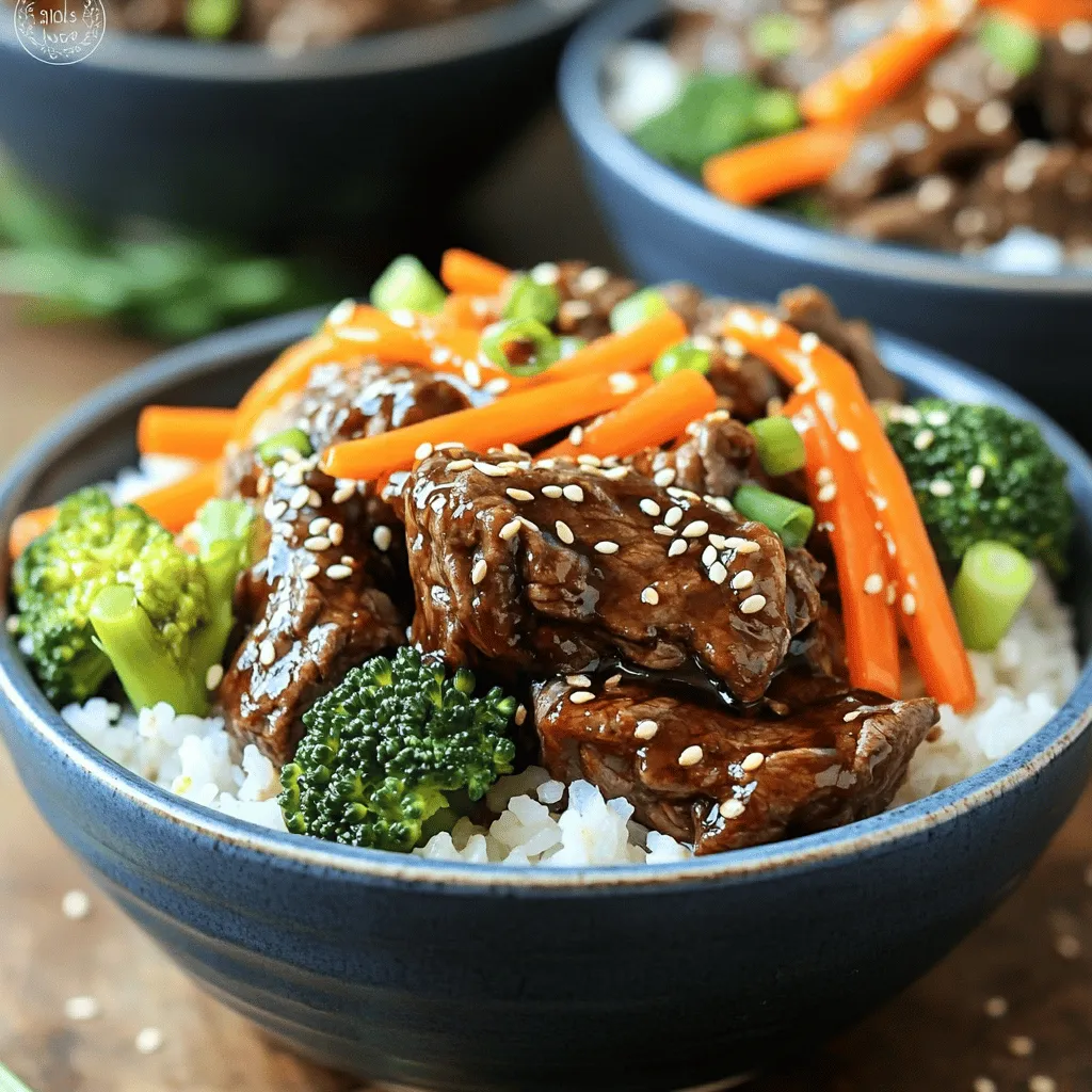 - 2 lbs beef chuck roast, cut into 1-inch cubes - 1/2 cup soy sauce - 1/4 cup beef broth - 1 cup carrots, julienned - 1 cup broccoli florets - 4 green onions, sliced for garnish - Sesame seeds for garnish - 1/4 cup brown sugar - 3 cloves garlic, minced - 1 tablespoon fresh ginger, grated - 1 tablespoon sesame oil - 1 teaspoon red pepper flakes Gathering the right ingredients is key to making delicious Slow Cooker Korean Beef Bowls. Start with quality beef chuck roast, as it becomes tender when slow-cooked. The soy sauce adds a salty, savory depth, while the beef broth keeps things juicy. Next, you’ll want vibrant vegetables. Carrots and broccoli not only add color but also give a nice crunch. For garnishing, green onions and sesame seeds bring freshness and texture to the dish. To enhance the flavor, use brown sugar for sweetness. Minced garlic and grated ginger bring warmth and depth. A splash of sesame oil adds richness, and red pepper flakes can bring a kick. Adjust the amount based on your spice preference. With these ingredients, you set the stage for a meal that will impress everyone at your table. - First, cut 2 lbs of beef chuck roast into 1-inch cubes. - In a large bowl, combine the beef with 1/2 cup soy sauce, 1/4 cup beef broth, and 1/4 cup brown sugar. - Add 3 cloves of minced garlic, 1 tablespoon of grated ginger, 1 tablespoon of sesame oil, and 1 teaspoon of red pepper flakes. - Mix well to coat the beef evenly. - Next, julienne 1 cup of carrots and cut 1 cup of broccoli into florets. - Transfer the beef mixture into the slow cooker and spread it evenly. - Add the carrots and broccoli to the slow cooker. Mix them in with the beef. - Cover the slow cooker. Cook on low for 6-8 hours or on high for 3-4 hours. - The beef will be tender and flavors will meld together. - Once cooked, shred the beef lightly with two forks. - Mix the shredded beef with the vegetables in the slow cooker. - Serve a generous scoop of the Korean beef mixture over a bowl of cooked rice. - Garnish with sliced green onions and a sprinkle of sesame seeds. Enjoy your meal! For tender beef, cook it for 6-8 hours on low heat. If you are short on time, use the high setting for 3-4 hours. The beef chuck roast softens well and absorbs the flavors. Let the beef rest after cooking. This helps the flavors meld together. A quick stir before serving mixes everything nicely. Serve your Korean beef bowls with a side of kimchi. This adds a spicy and tangy kick. For rice, I recommend using jasmine or sticky rice. Both pair perfectly with the beef and veggies. You can also try cauliflower rice for a low-carb option. For a beautiful presentation, use colorful bowls. Place the beef and veggies on top of the rice, then add garnishes. Slice green onions and sprinkle them on top. A few sesame seeds add crunch and charm. You can also add a lime wedge for a pop of color and flavor. {{image_2}} You can change the beef cut for this dish. Chuck roast works well, but brisket or flank steak are also tasty. If you want to swap vegetables, use what you like. Bell peppers or snap peas add a nice crunch. You can also mix in mushrooms for an earthy flavor. Want more heat? Add extra red pepper flakes or some sriracha sauce. A dash of chili paste will also spice things up. If you prefer sweet, mix in more brown sugar or honey. A touch of pineapple can balance the spice and add a fruity twist. For a gluten-free option, use tamari instead of soy sauce. This keeps the flavor while meeting your needs. If you want a vegetarian dish, swap the beef for hearty mushrooms or tofu. Use vegetable broth instead of beef broth for a full flavor. To store leftovers, let the beef cool completely. Place it in an airtight container. Make sure to include the veggies and sauce. For best taste, enjoy within three days. This keeps the flavors fresh and vibrant. To freeze the dish, first cool it down. Use freezer-safe bags or containers for storage. Remove as much air as possible. You can freeze it for up to three months. When you are ready to eat, thaw it overnight in the fridge. To reheat, use the stove or microwave. For the stove, add a splash of water and heat on low. Stir often to keep it moist. In the microwave, cover it with a damp paper towel. This helps keep the beef juicy. Enjoy your meal warm and delicious! How long can you store Korean beef bowls in the refrigerator? You can store Korean beef bowls in the fridge for up to four days. Make sure to place them in an airtight container. This way, the flavors stay fresh, and you can enjoy them for lunch or dinner later. Can I use frozen beef in this recipe? Yes, you can use frozen beef for this dish. Just remember to thaw it first. This helps the beef cook evenly. If you forget to thaw it, you can still cook it in the slow cooker. Just add some extra cooking time. What can I substitute for soy sauce? If you need a soy sauce substitute, try tamari or coconut aminos. These options work well and are gluten-free too. They help keep the dish flavorful and balanced. Is there a low-sugar option for this recipe? Yes, you can use a sugar substitute like stevia or monk fruit. These options can reduce the sweetness without losing taste. You can also cut the brown sugar amount in half if you prefer. How does the slow cooker affect the beef's texture? The slow cooker makes the beef very tender. Cooking it low and slow helps break down the meat's fibers. This creates a melt-in-your-mouth texture that you will love. Can I cook it on the stove instead of a slow cooker? You can cook this recipe on the stove. Just use a large pot, and simmer the beef on low heat. Stir it often and check for tenderness. It should take about one to two hours to get it just right. This blog post covered everything you need to make delicious Korean beef bowls. We discussed main ingredients like beef chuck, soy sauce, and flavorful additions. You learned how to prepare, cook, and serve this dish perfectly. I shared tips for customizing ingredien