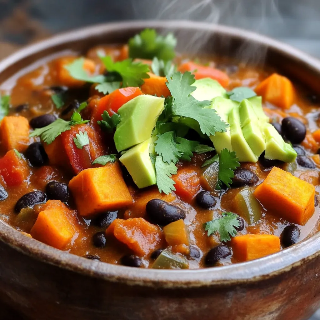 To make Slow Cooker Sweet Potato Black Bean Chili, you need these items: - 2 large sweet potatoes, peeled and diced - 1 can (15 oz) black beans, drained and rinsed - 1 can (15 oz) diced tomatoes, with juice - 1 medium onion, diced - 2 cloves garlic, minced - 1 red bell pepper, diced - 2 cups vegetable broth - 1 tablespoon chili powder - 1 teaspoon cumin - 1 teaspoon smoked paprika - 1/2 teaspoon cayenne pepper (adjust for spice preference) - Salt and pepper to taste - 1 tablespoon olive oil - Fresh cilantro and avocado for garnish Using good-quality ingredients makes a big difference. Choose organic sweet potatoes for better flavor. Fresh herbs add brightness, so look for vibrant cilantro. Canned beans should have no added sugar or preservatives. Always check the label for quality. Fresh garlic and onion enhance the taste, so avoid pre-chopped versions. The better the ingredients, the more delicious your chili will be. You can easily swap out some ingredients. If you’re out of sweet potatoes, try butternut squash. Any beans work, so use pinto or kidney beans instead of black. If you want to skip the canned tomatoes, fresh diced tomatoes are a great choice. For a smoky flavor, use liquid smoke in place of smoked paprika. Adjust the spices based on your taste. First, gather all your ingredients. You will need: - 2 large sweet potatoes, peeled and diced - 1 can (15 oz) black beans, drained and rinsed - 1 can (15 oz) diced tomatoes, with juice - 1 medium onion, diced - 2 cloves garlic, minced - 1 red bell pepper, diced - 2 cups vegetable broth - 1 tablespoon chili powder - 1 teaspoon cumin - 1 teaspoon smoked paprika - 1/2 teaspoon cayenne pepper (adjust for spice preference) - Salt and pepper to taste - 1 tablespoon olive oil - Fresh cilantro and avocado for garnish Start by heating the olive oil in a skillet over medium heat. Add the diced onion. Sauté for about five minutes until it turns translucent. This will build a nice base flavor. Next, add the minced garlic and diced red bell pepper. Cook them together for another two to three minutes. You want the aroma to fill your kitchen. Now, transfer all your sautéed mix to the slow cooker. In the slow cooker, combine the diced sweet potatoes, black beans, and diced tomatoes with their juice. Pour in the vegetable broth. This will create a rich and hearty base. Next, season your mix with chili powder, cumin, smoked paprika, cayenne pepper, salt, and pepper. Stir everything well so the flavors can blend. It's important to cover the slow cooker with the lid. Cook it on low for six to eight hours or on high for three to four hours. The sweet potatoes should be tender when done. Once the cooking time is up, taste your chili. Adjust seasonings if needed. This is where you can make it your own. Serve it hot. Garnish with fresh cilantro and slices of avocado. The avocado adds creaminess. Enjoy your bowl of sweet potato black bean chili! You can adjust the cooking time based on your schedule. If you cook on low, plan for 6-8 hours. If you need it faster, use the high setting for 3-4 hours. Check the sweet potatoes to ensure they are soft. They should easily break apart when pressed with a fork. This helps make sure your chili has the perfect texture. To boost the flavor, consider adding more spices. A dash of extra chili powder can increase the heat. You can also add a bit of lime juice before serving. This will brighten the taste. For a smoky flavor, try adding a bit more smoked paprika. These small tweaks can make a big difference in your chili. Serve the chili hot in bowls. Top it with fresh cilantro for a pop of color. Slices of avocado add creaminess and balance the heat. You can also serve it with cornbread or tortilla chips for crunch. This chili pairs well with a side salad for a fresh touch. Enjoying it with friends makes the meal even better! {{image_2}} You can boost the nutrition of this chili by adding more vegetables. Consider diced carrots, zucchini, or corn. These veggies add color and flavor. You can also toss in some kale or spinach near the end. This keeps them bright and fresh. Feel free to get creative with what you have at home. Want to make this chili heartier? Add some protein! Cooked ground turkey or beef works great. If you prefer plant-based options, try adding lentils or quinoa. Both options add texture and protein. Just make sure to adjust the cooking time. You want everything to cook evenly. This recipe is already vegetarian and vegan-friendly. To keep it that way, avoid any meat additions. You can also check your broth to ensure it is plant-based. Use vegetable broth for a rich flavor. For extra creaminess, add a dollop of dairy-free yogurt or cashew cream when serving. These small tweaks can elevate your dish. After making your chili, let it cool. Once cool, transfer it to an airtight container. Store it in the fridge for up to five days. This keeps the flavors fresh and safe. You can freeze leftover chili for later. Use freezer-safe containers or bags. Make sure to leave some space for expansion. It will stay good for about three months. To enjoy, just thaw it overnight in the fridge. To reheat, you can use the stove or microwave. For the stove, heat it in a pot over medium heat. Stir often until warmed through. If using a microwave, place it in a bowl and cover it. Heat in short bursts, stirring in between. This helps it heat evenly. Enjoy your chili warm! Yes, you can make this chili on the stovetop. Start by heating olive oil in a pot. Sauté the onion, garlic, and bell pepper just like in the slow cooker method. Then, add the sweet potatoes, beans, tomatoes, and broth. Season well and bring to a boil. Lower the heat and let it simmer for about 30 minutes. Stir often until the sweet potatoes soften. To store leftover chili, first let it cool. Then, transfer it to an airtight container. You can keep it in the fridge for up to five days. If you want to store it longer, freeze it. Use freezer-safe containers or ba