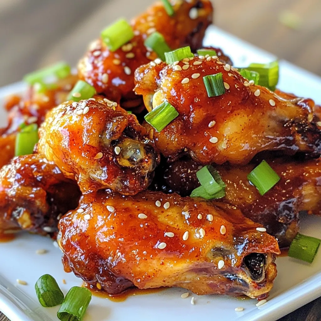 - 2 pounds chicken wings - 1/4 cup honey - 3 tablespoons soy sauce - 3 cloves garlic, minced - 2 tablespoons sriracha or your favorite hot sauce - 1 tablespoon rice vinegar - 1 teaspoon sesame oil - Salt and pepper to taste - Chopped green onions for garnish - Sesame seeds for garnish You can add other ingredients to make these wings your own. Try adding: - Lemon juice for a tangy twist - Ginger for a warm spice - Chili flakes for extra heat For the best flavor, I recommend using: - Raw honey for natural sweetness - Low-sodium soy sauce to control salt levels - Aged sriracha for deeper flavor These simple choices will help you create a dish that impresses everyone. {{ingredient_image_1}} 1. Preheat your oven to 400°F (200°C). 2. Line a baking sheet with aluminum foil. This helps with cleanup. 3. Place a cooling rack on top of the baking sheet. This allows air to circulate. 4. In a large mixing bowl, combine: - 1/4 cup honey - 3 tablespoons soy sauce - 3 cloves garlic, minced - 2 tablespoons sriracha or your favorite hot sauce - 1 tablespoon rice vinegar - 1 teaspoon sesame oil - Salt and pepper to taste 5. Mix well to make a tasty marinade. 6. Add the chicken wings to the bowl and toss them. Make sure they get coated well. 7. Let them marinate for at least 30 minutes. For more flavor, marinate up to 2 hours in the fridge. 1. Take the wings out of the marinade. Place them on the cooling rack. 2. Reserve the leftover marinade for later use. 3. Bake the wings in the preheated oven for 40-45 minutes. Flip them halfway through. This helps them cook evenly. 4. When they are golden brown and crispy, remove them from the oven. 5. While the wings bake, pour the reserved marinade into a small saucepan. 6. Simmer the marinade over medium heat for about 5-7 minutes. This thickens it a bit. 7. Toss the baked wings in the thickened marinade. Make sure they are well coated. - For extra crispiness, broil the wings for 2-3 minutes at the end. - Keep an eye on them while broiling to prevent burning. - Garnish with chopped green onions and sesame seeds before serving. This adds color and flavor. For the best taste, marinate the wings. You need to mix honey, soy sauce, garlic, sriracha, rice vinegar, sesame oil, salt, and pepper. Place the wings in this mix for at least 30 minutes. For more flavor, let them sit in the fridge for two hours. Marinating helps the wings soak up all those tasty flavors. To get crispy skin, follow these steps. First, use a cooling rack on your baking sheet. This setup allows air to flow around the wings. Bake them at 400°F (200°C) for 40-45 minutes. Flip the wings halfway through for even cooking. If you want extra crispiness, broil them for 2-3 minutes at the end. Keep an eye on them to avoid burning. When serving your wings, think about color and taste. Garnish them with chopped green onions and sesame seeds. This adds a nice touch. Pair your wings with celery sticks and ranch or blue cheese dressing for dipping. You can also serve them with a side of rice or salad for a complete meal. Enjoying these wings with friends makes them even better! Pro Tips Marinate Longer for More Flavor: For the best flavor, let your wings marinate for at least 2 hours in the refrigerator. This allows the marinade to penetrate the chicken, enhancing the taste. Use a Cooling Rack: Elevating the wings on a cooling rack while baking allows air to circulate, resulting in crispier skin. It prevents the wings from sitting in their own juices. Adjust the Heat: If you prefer milder wings, reduce the amount of sriracha or hot sauce. You can also add a touch of cayenne pepper for a subtle kick without overwhelming heat. Garnish for Presentation: Adding chopped green onions and sesame seeds not only enhances the flavor but also makes your wings visually appealing. Don't skip this step! {{image_2}} You can change the heat in your spicy honey garlic wings. If you like it mild, use less sriracha or try a sweet chili sauce. For more heat, add more sriracha or a dash of cayenne pepper. You could even mix in some chopped jalapeños for a fresh kick. Just taste as you go to find your perfect balance. If you want a different sweet flavor, there are great options. Maple syrup or agave nectar can work well in place of honey. You can also use brown sugar for a deeper flavor. Just remember that each sweetener will change the taste a bit, so pick what you love most. If you have dietary needs, you can easily swap some ingredients. For a gluten-free version, choose a gluten-free soy sauce. If you're vegan, use tofu wings and a plant-based honey substitute. You can even use coconut aminos for a lower-sodium option. These easy swaps help everyone enjoy the wings! After you enjoy your spicy honey garlic wings, store any leftovers in an airtight container. Let the wings cool to room temperature first. This helps keep them fresh and safe. Place them in the fridge if you plan to eat them within three days. For longer storage, consider freezing them. To reheat your wings, start by taking them out of the fridge. Preheat your oven to 350°F (175°C). Place the wings on a baking sheet lined with foil. Heat them for about 10-15 minutes until they’re warm and crispy. You can also use a microwave, but it may not keep them crispy. If you want to freeze the wings, wrap them tightly in plastic wrap or aluminum foil. Place them in a freezer-safe bag or container. They can last up to three months in the freezer. When you're ready to eat, thaw them overnight in the fridge before reheating. This keeps the flavor and texture just right. Yes, you can make these wings in an air fryer. Preheat your air fryer to 400°F. Place the marinated wings in a single layer in the basket. Cook for about 25-30 minutes, flipping halfway. This will give you crispy and delicious wings. These wings pair well with many sides. Try serving them with: - Celery sticks - Carrot sticks - Ranch or blue cheese dip - A fresh salad - Sweet potato fries These options ba