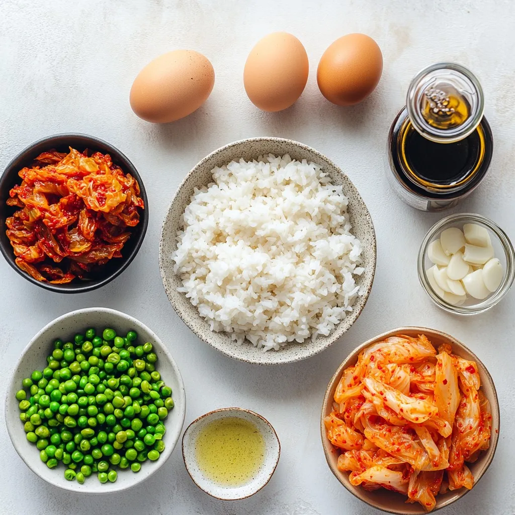 To make spicy kimchi fried rice, gather these simple ingredients: