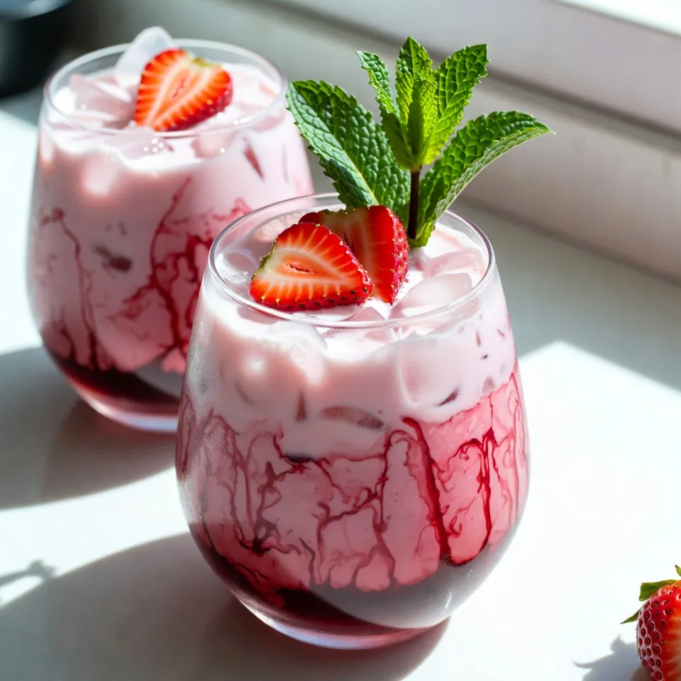 Serve the drink in clear glasses. This way, everyone sees the pink color and strawberries. You can also add a sprig of mint on top. It adds a nice touch of green and a hint of freshness. Enjoy your drink right away for the best look and taste!