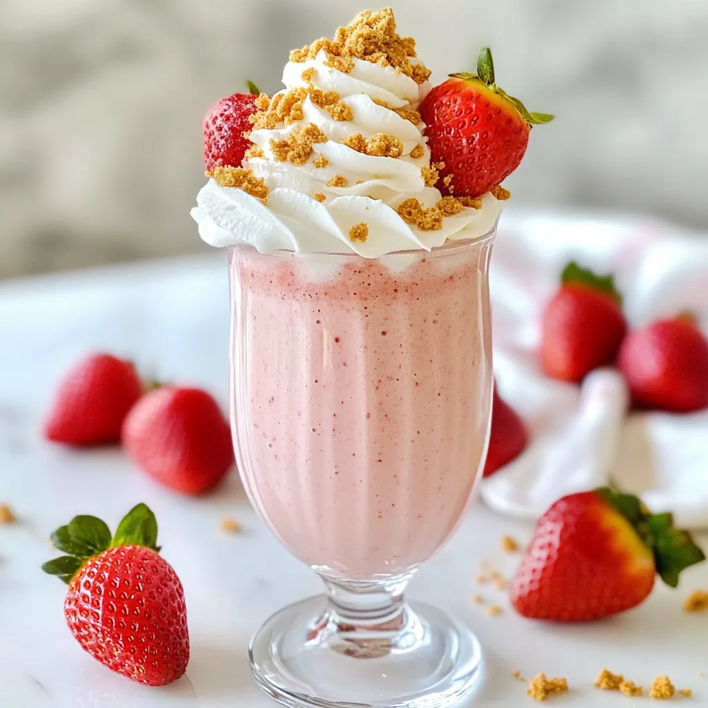 Pour your smoothie into tall glasses for a fun look. Top each glass with extra strawberries and a dollop of whipped cream. Sprinkle graham cracker crumbs on top for that cheesecake feel. Serve with a straw for easy sipping. Enjoy right away for the best flavor and texture!