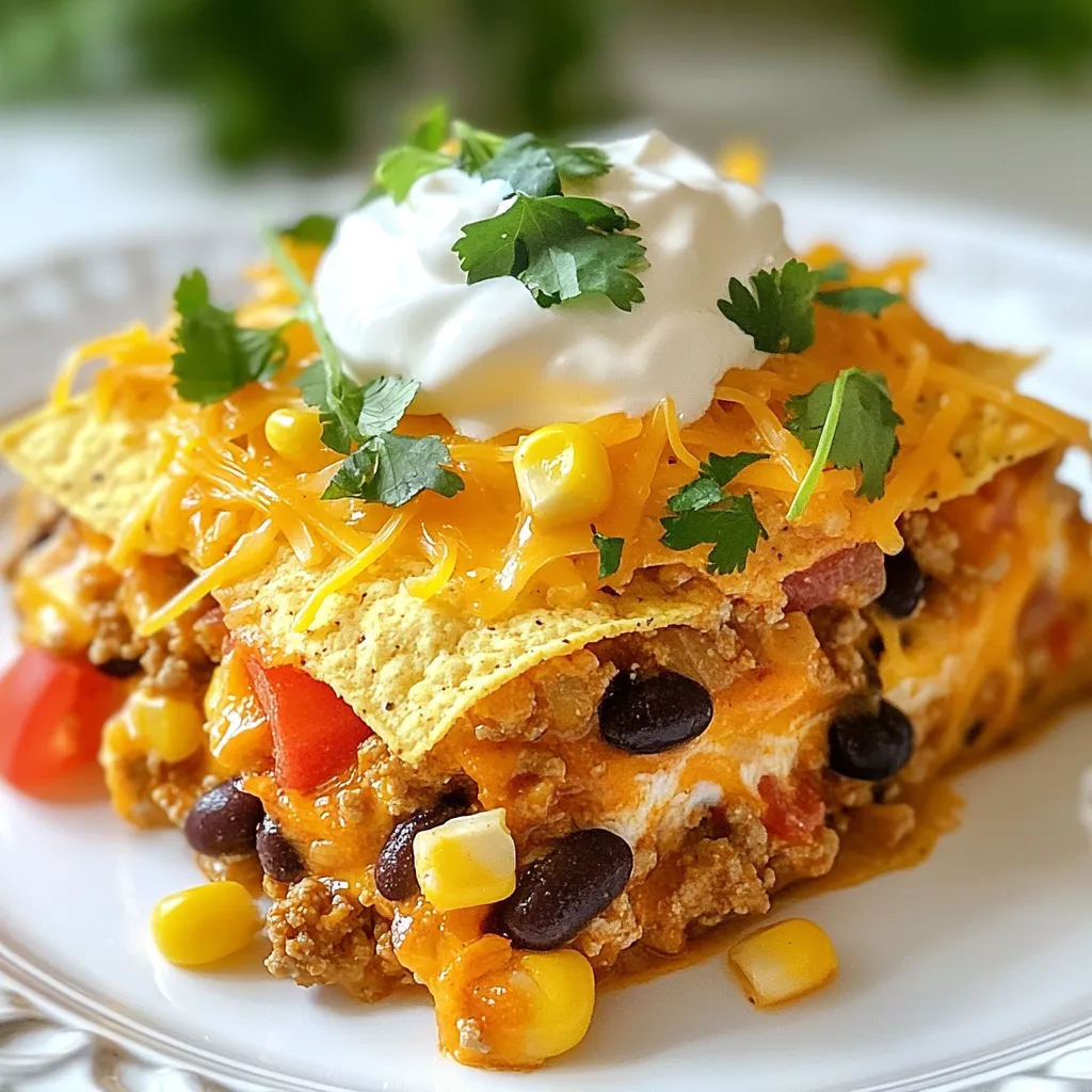I choose black beans and corn for a healthy twist. They add texture and color. Diced tomatoes with green chilies add a bit of heat and sweetness. The crushed tortilla chips create a tasty layer that soaks up the flavors.
