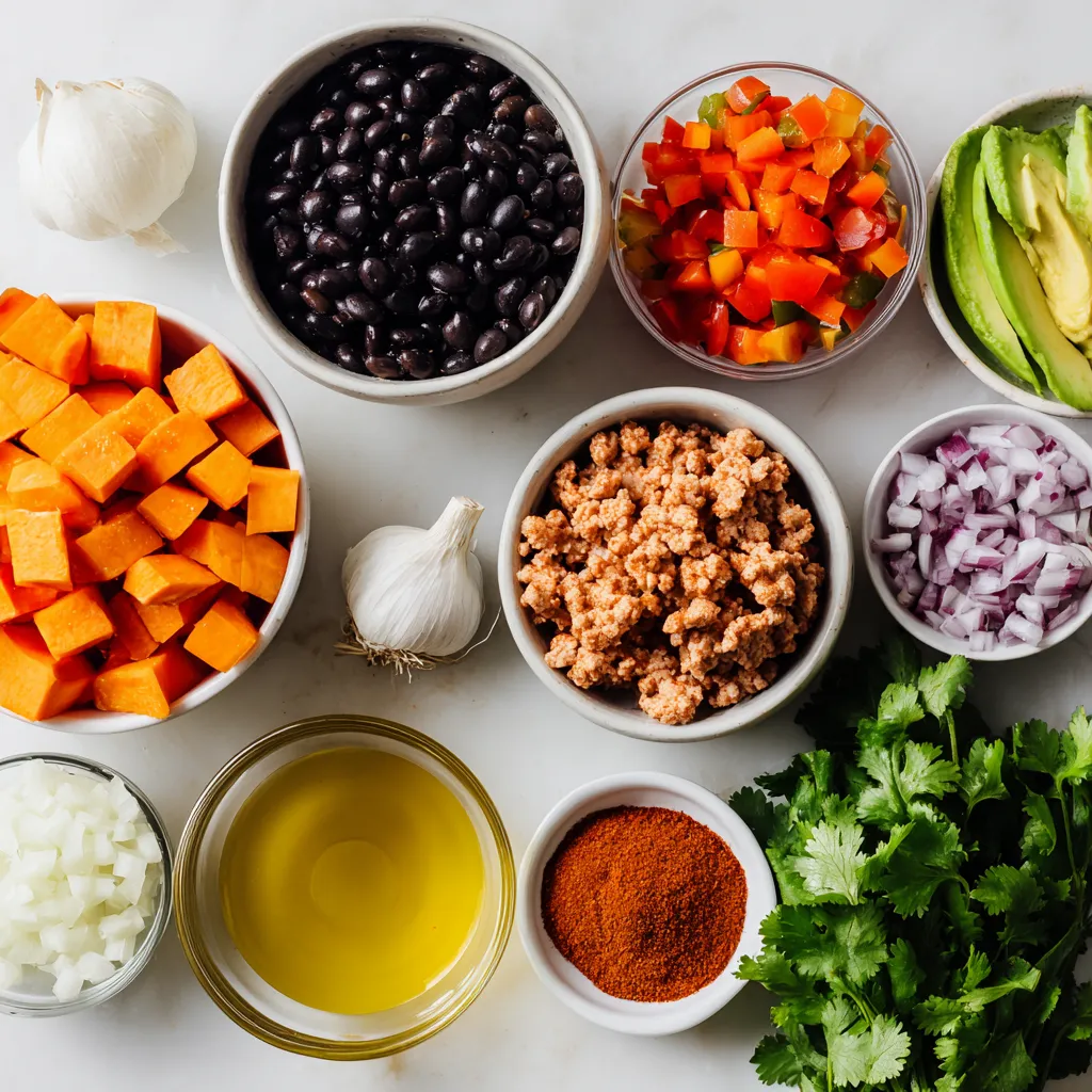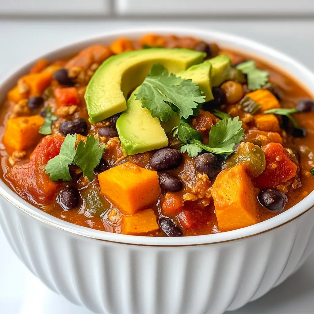 A hearty and flavorful chili made with ground turkey, sweet potatoes, and black beans, perfect for a cozy meal.